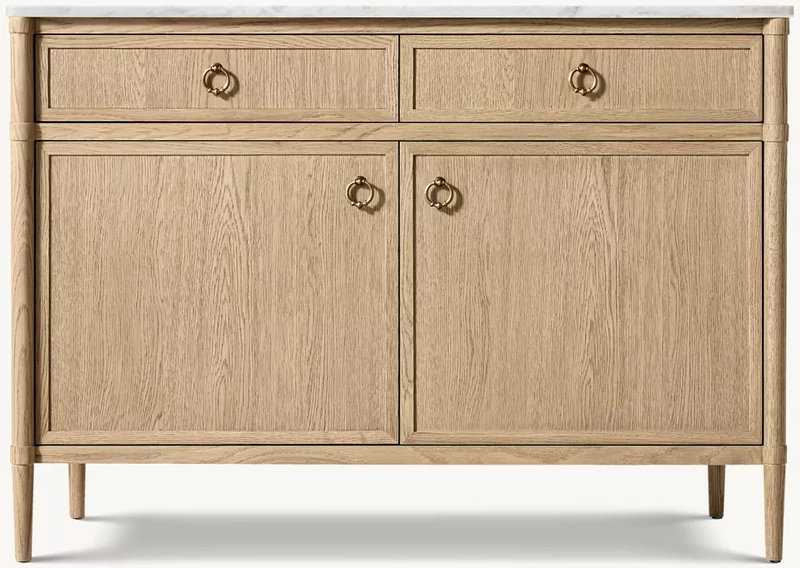 Característica decorativa: Cada aparador está dotado de 'singularidad' por su textura natural. La combinación de tiradores retro y líneas simples la convierte no solo en una pieza de almacenamiento sino también en un punto focal visual (la encimera puede contener elementos decorativos).