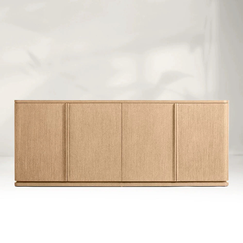 Para una textura cruda y natural, puede elegir carillas de madera sin teñir, que conservan las diferencias de color natural de la madera (como el cambio gradual de los granos claros y oscuros en el roble). Esto hace que el aparador sea un 'espécimen natural de respiración'.