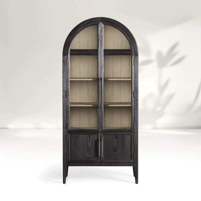 Puertas de vidrio: los gabinetes cerrados están equipados con puertas de vidrio, que no solo agregan un toque de elegancia, sino que también le permiten ver fácilmente el contenido dentro sin tener que abrir las puertas. El vidrio está templado para mayor seguridad y durabilidad.