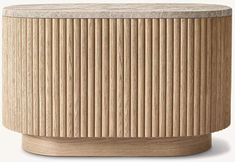 El diseño de rayas verticales en la superficie del gabinete es un detalle muy ingenioso. Estas rayas verticales no solo agregan un efecto de tres dimensiones a la mesa auxiliar, sino que también dotan con una sensación dinámica de ritmo. Cuando la luz brilla en la mesa lateral, las rayas verticales crearán un efecto de luz y sombra de brillo y oscuridad alterna, haciendo que la mesa lateral se vea más vívida e interesante. Además, la dirección de la disposición de las rayas verticales hace eco del contorno ovalado de la mesa auxiliar, mejorando aún más la belleza armoniosa general.