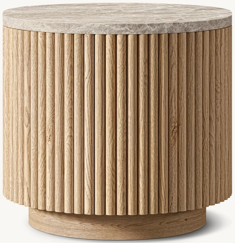 El diseño de franjas verticales en la superficie del gabinete es una característica sobresaliente. Estas rayas alineadas verticalmente no solo mejoran la dimensionalidad de las tres de la mesa lateral y la sensación de capas, sino que también guían el ojo verticalmente, haciendo que la mesa lateral parezca más vertical visualmente. La combinación de rayas verticales y el gabinete circular crea una combinación perfecta de rigidez y suavidad, rompiendo la monotonía potencial de la forma circular y dotando la mesa lateral con una belleza rítmica única.