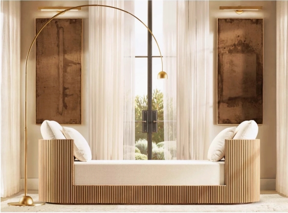 Configuración de la almohada: las almohadas de lanzamiento redondo regordete se colocan simétricamente en ambos extremos. Se llenan completamente. La forma simple agrega una sensación de calor. Mientras tanto, brindan un apoyo cómodo para la inclinación y debilitan las líneas duras del cuerpo del banco.
